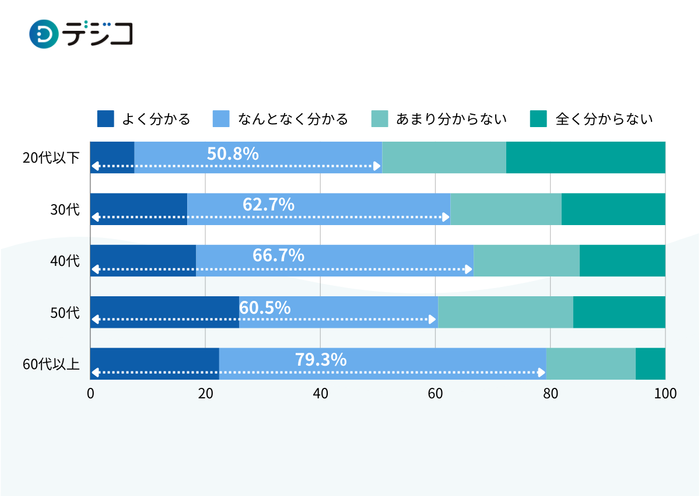 「デジタルギフト」「電子ギフト」「オンラインギフト」(※2)と聞いて何を指しているか分かるか聞いたところ、全世代共通して過半数以上が「分かる」と回答しました。特にシニア層の理解度が高く、79.3%が「分かる」と回答しました。