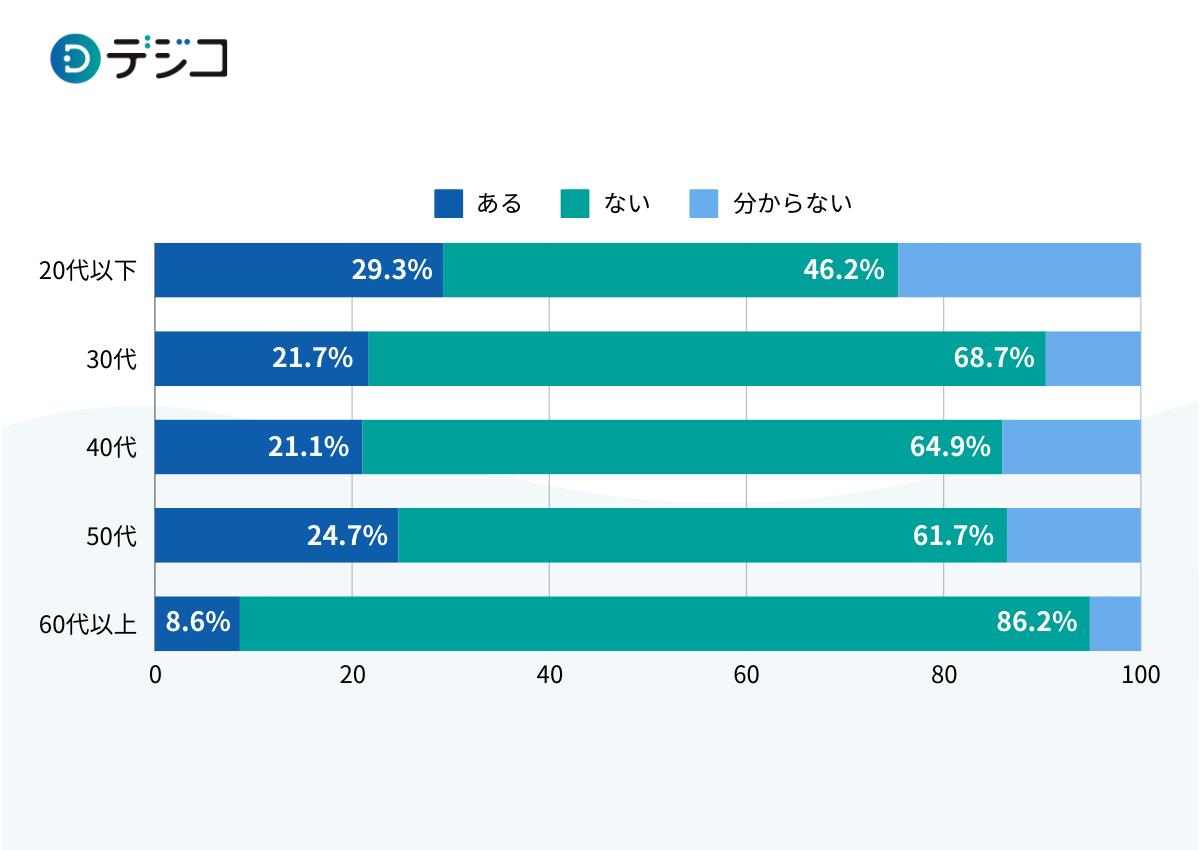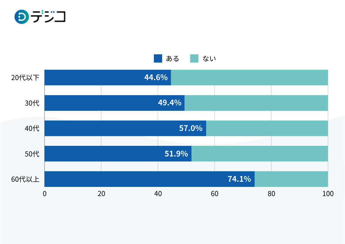 企業が実施する販促キャンペーンに参加したことがあるか聞いたところ、20代以下は他世代をやや下回りましたが、概ね半数以上は参加経験があることが分かりました。特に参加経験の割合が多く見られたのは、60代以上のシニア層で74.1%でした。