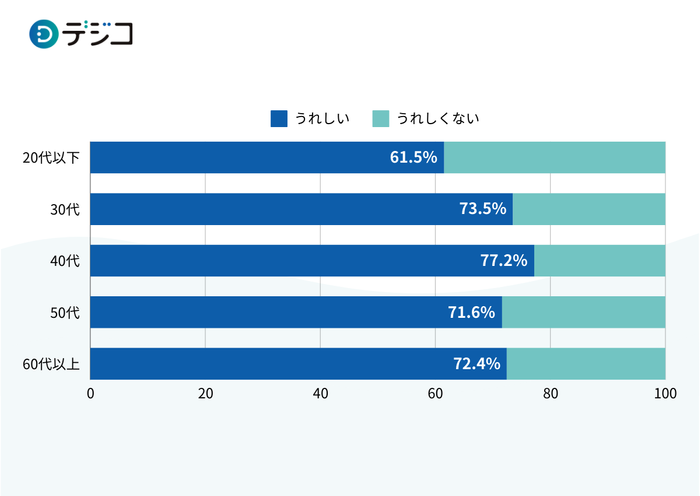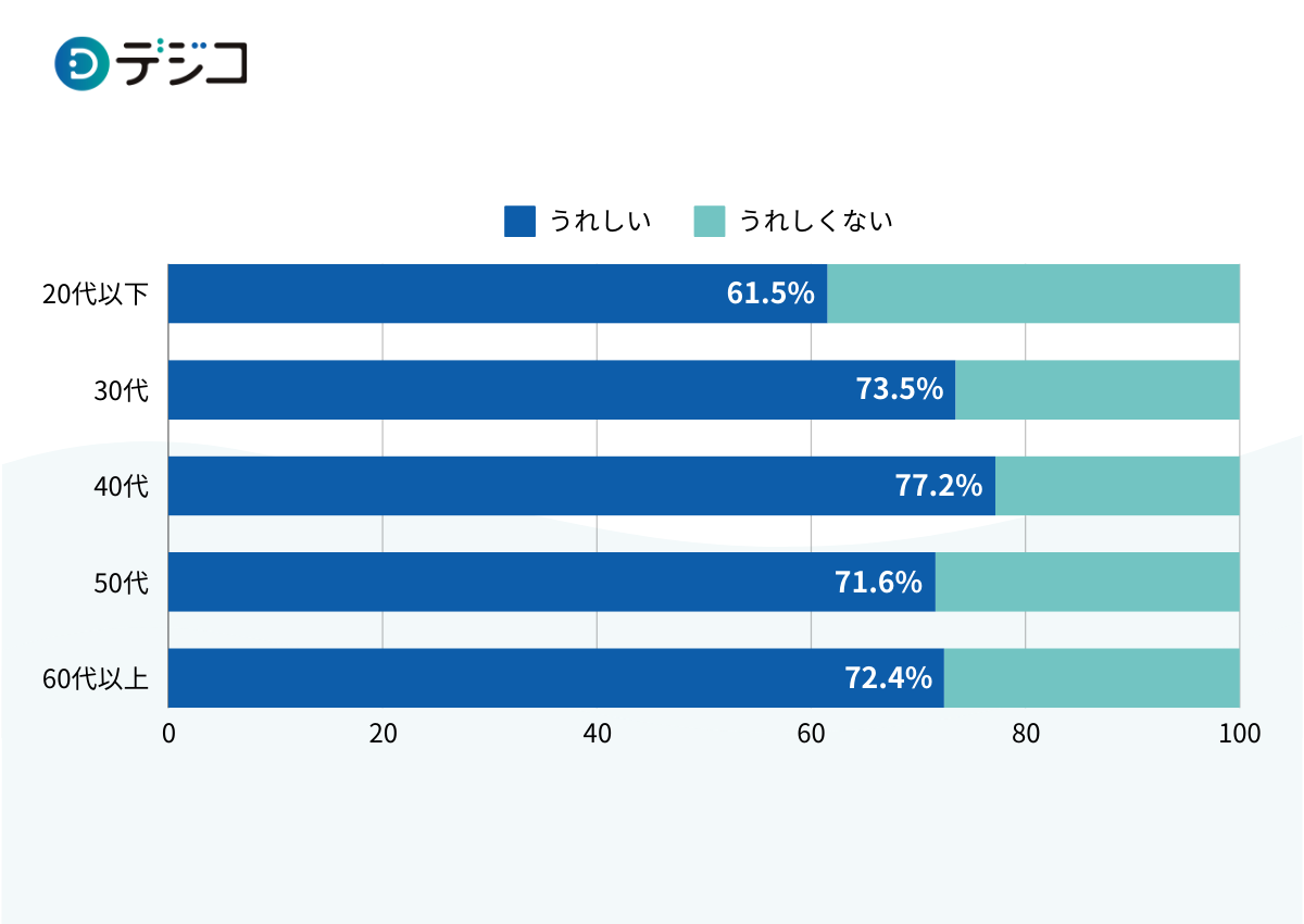 「デジタルギフト」「電子ギフト」「オンラインギフト」を貰えたらうれしいか聞いたところ、20代以下では6割以上、30代以上では7割以上が「うれしい」と回答しました。また、シニア層に関しても72.4%が「うれしい」と回答し、世代を問わず多くの人に喜ばれるギフトサービスであることが分かりました。