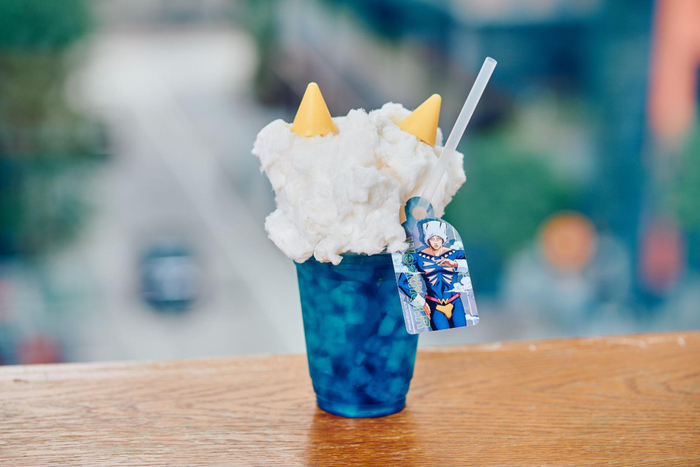 さらに、東京ミステリーサーカスでの公演期間中、1F「HIMITSU COFFEE」にてオリジナルカフェメニューも販売いたします。コースターも付属する「カフェラテアート」は、空条徐倫、E・コステロ、ウェザー・R、ナルシソ・Aの4種類をご用意。カフェラテアートの絵柄はお好きなキャラクターをお選びいただくことが可能です。さらに「ナルシソ・Aのミックスベリーフロート」や「ウェザー・Rのふわふわコットンキャンディソーダ」など、キャラクターをイメージした見た目にも楽しめるドリンクにもご注目。