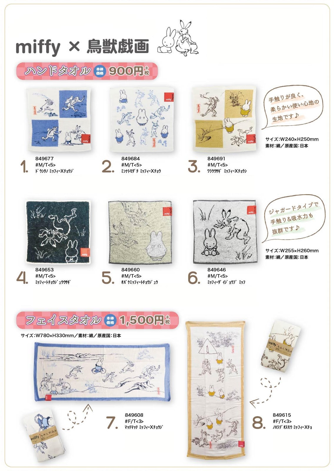 「誕生65周年記念 ミッフィー展」 にて登場した、miffyと平安時代から鎌倉時代前期にかけて描かれた鳥獣戯画のオリジナルグッズ。発売開始よりツイッターなども大きな反響を呼びながら、展示会先行発売のために全国のミッフィファンから待ち望まれているシリーズです。2020年9月12日に一般発売が解禁されました。
