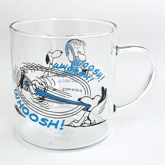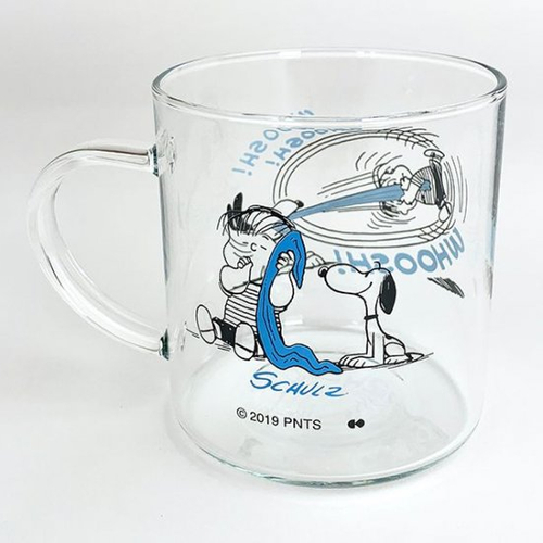 スヌーピーとライナスの楽しいデザインがかわいい、ガラスマグです。透明なガラスのクリア感に、ライナスのブルーのブランケットが映えています♪引っ張り合っているイラストもかわいくて、思わずクスっとしてしまいますよね。