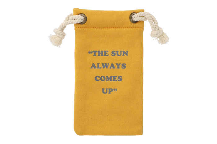 サングラス姿のキャラクターが愛らしい、ヴィンテージ感あふれるマルチポーチ。メガネ入れ以外の用途としても使いやすい巾着仕様です。