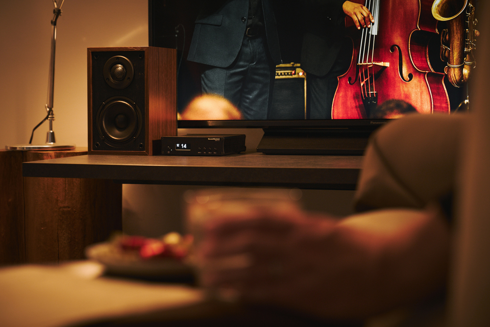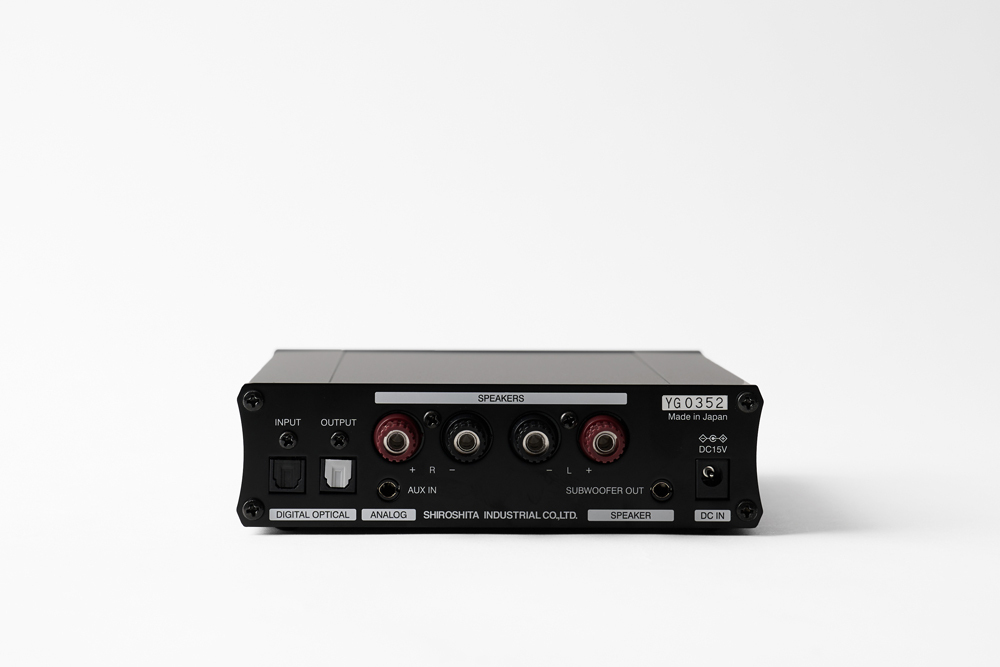 デジタル処理に頼らない、自然広がりのある音にこだわり、HiFiオーディオ用として使われる電子部品を採用。これまで様々なオーディオ機器を開発してきたノウハウを注ぎ込んで、テレビに送られてくる様々なコンテンツの音声信号を素直に鳴らすことができるテレビ用アンプをつくりあげました。テレビとの接続に特化するため入力端子は、光デジタルとAux in(アナログ)の2系統のみ。音響用のステレオスピーカーと組み合わせれば、自然で立体感のある音響空間が出来上がります。