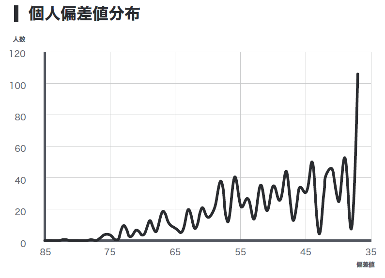 全国B2B企業マーケティング教養力判定テスト 平均点と個人偏差値分布