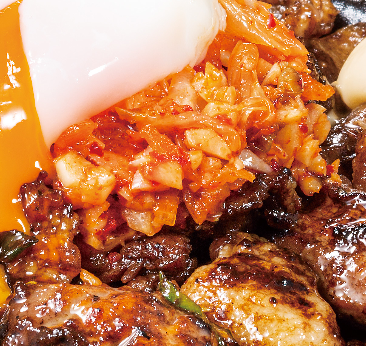 今回は更に、こってりとした豚焼肉の旨みを引き立てる付け合わせとして「超すたみなキムチ」をご用意しました。「超すたみなキムチ」は店舗で生ニンニクを粗挽きにした“クラッシュニンニク”をごま油で炒め、辛味と酸味のバランスがとれたキムチを混ぜ合わせ、更にごま油を加えて風味を整えています。キムチの酸味とニンニクの風味、ごま油の香りで食欲をそそるすた丼屋オリジナルの付け合わせです。「超濃厚すたみな焼肉ダレ」のニンニク成分と合わせた丼ぶり全体のニンニク使用量はすた丼の約5倍と、忙しい新生活で絶好のスタートダッシュを切れる、すたみな満点な豪快肉丼となっております。