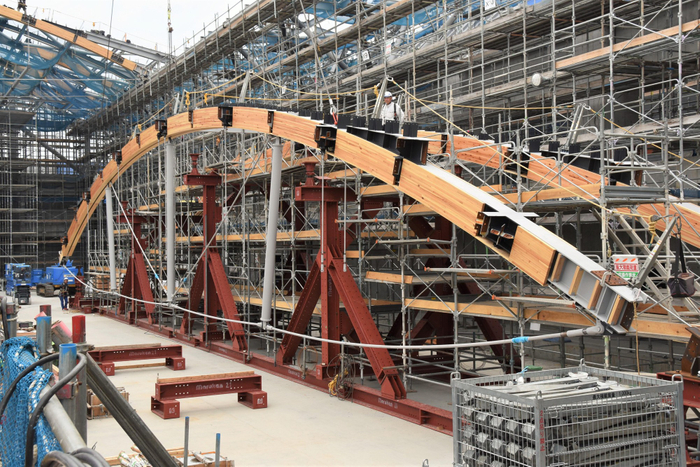 大屋根を支える梁は計14本(アーチ状12本)設置