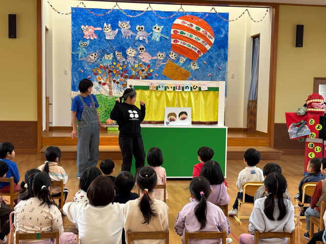 11月6日(木)に口腔ケア指導に関する研修を受けた、とよた保育園の保育者と中野市の歯科衛生士が、11月7日(金)に教材(マグネットシアター)を用いた指導を行い、園児たちは楽しみながら口腔ケアの重要性とその方法を学びました。