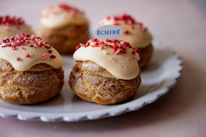 クランブル生地をのせて焼き上げた香ばしいシューに、エシレ バターを贅沢に使用したカスタードクリームを絞り、国産いちごをまるごと1粒忍ばせました。トップにはバタークリームとフリーズドライいちごをあしらい、淡いピンクが映える春らしい佇まいに仕上げています。