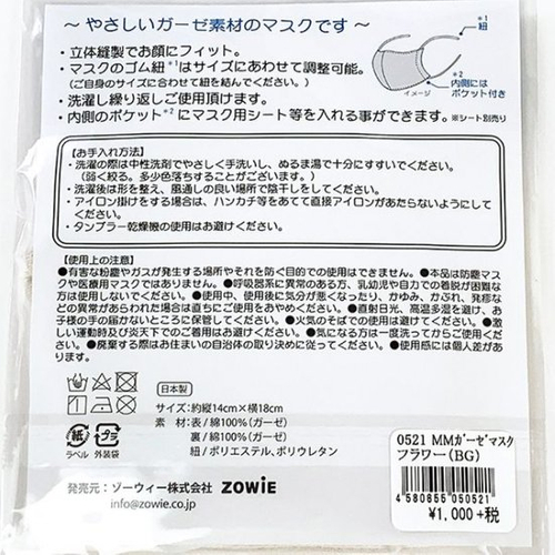 日本製のガーゼ素材のマスクで、立体裁縫が施されているので付け心地も満点。内側にはポケットも付いているので、マスクシートを入れることもできちゃいます。
