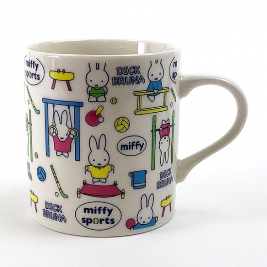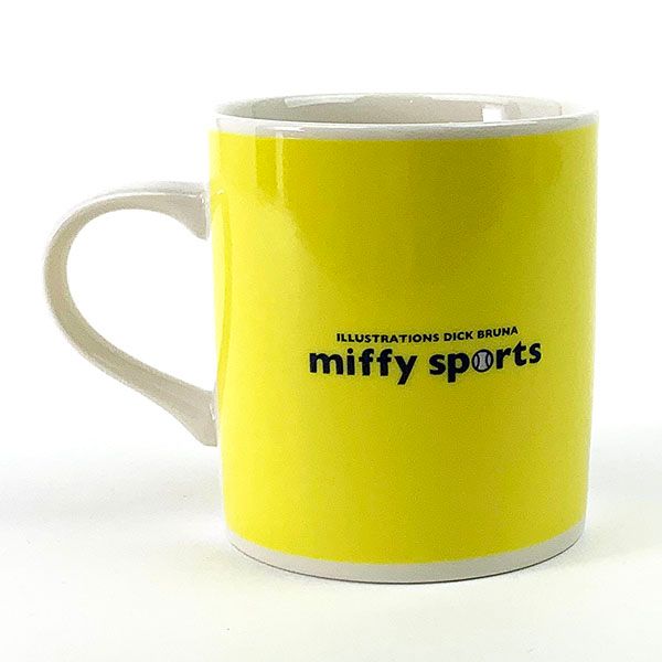 こちらは、スポーツシリーズのデザインマグです。イエローベースがカラフルでキュート。アクティブな服装のミッフィーが並んでいて、楽しいですね。