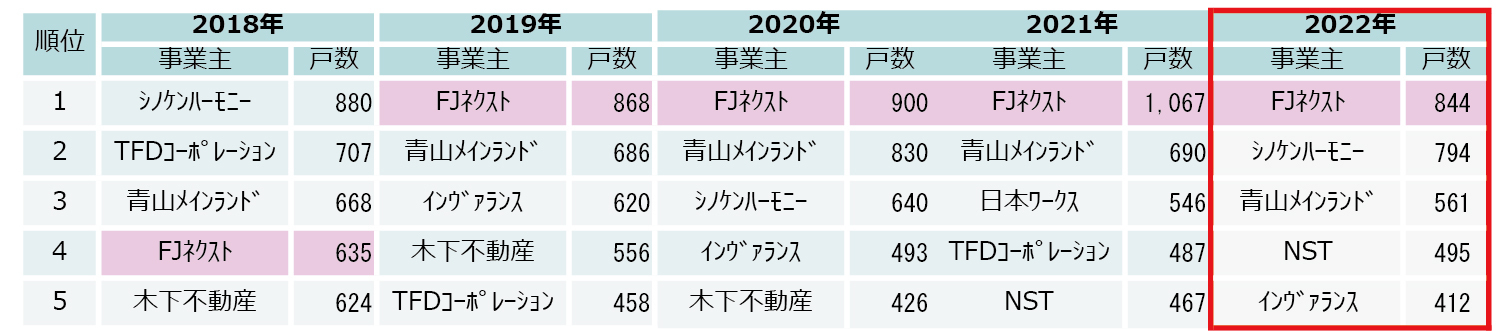 なお、2023年上期(1-6月)においても522戸の投資用マンションを供給し、第1位となりました。