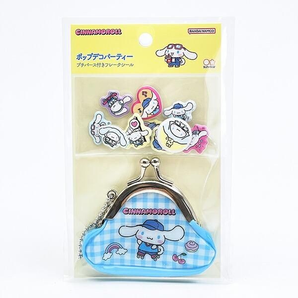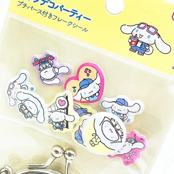 サンリオのシールにはほかにもこんなラインナップも。こちらは、 サンリオ シナモロール プチパース付きフレークシール デコポップパーティーです。