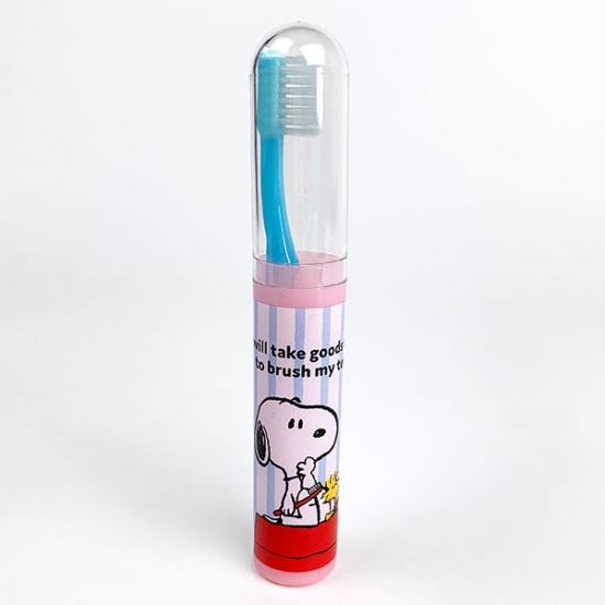 こちらは、ストライプのタイプです。お座りしているスヌーピーの表情がキュート♡歯ブラシもブルーで爽やかなイメージのセットです。