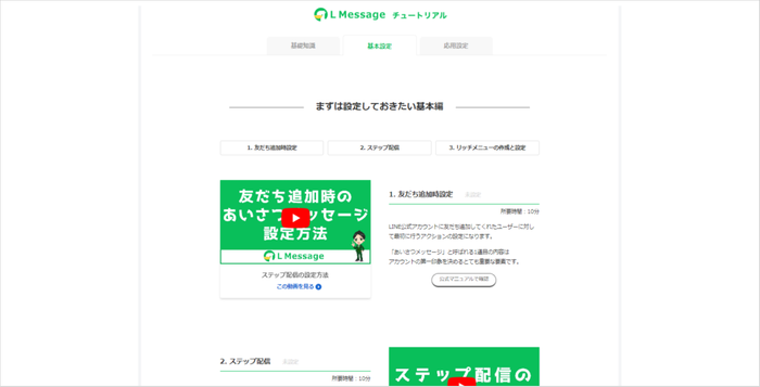 LINE公式アカウント自動化ツール「L Message(エルメッセージ)」の管理画面に、初期ユーザー向けのマニュアルを追加。 アップグレード・解約・診断コンテンツの作成の方法などを動画付きで解説。