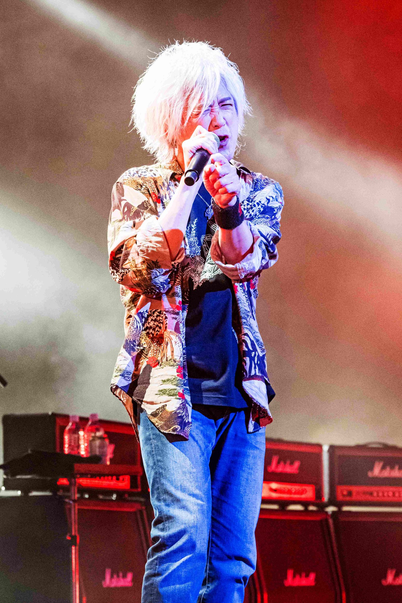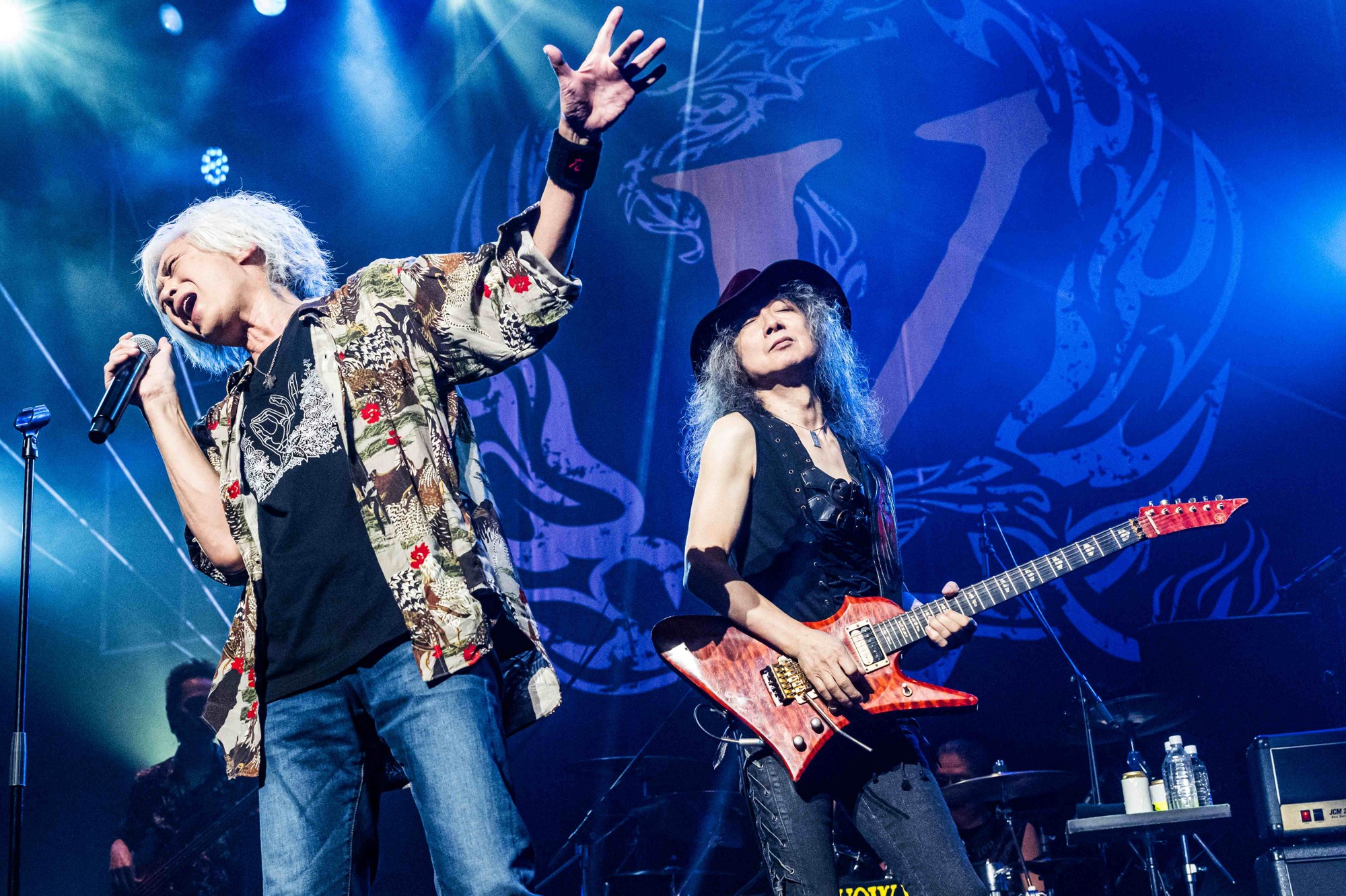 VOW WOWの現在のメンバーは、卓越したテクニックと唯一無二のトーンで魅了するギタリスト、山本恭司(g ,vo)と、ヴィンテージシンセサイザーの要塞を操る厚見玲衣(key,vo)、日本人離れした歌声を持つ人見元基(vo)の3人。1984年、アルバム『BEAT OF METAL MOTION』でデビュー。1980年代、まだまだ世界への壁が立ちはだかっていた日本のロックシーンにおいて、英国を拠点に圧倒的な存在感を放ち、6枚のアルバムを発表した。しかし1990年、日本武道館公演にて惜しまれながらも解散。2009年-2010年に、再結成をし、変わらぬ勇姿を魅せつけたが、その後の活動はなく、さらに時間が経過し、昨年2024年、『BEAT OF METAL MOTION』リリース40周年を機に再始動。今年のライブでも明らかに若いオーディエンスが目立ち、まさに王者の凱旋ともいうべきパフォーマンスを見せた。