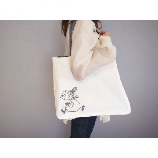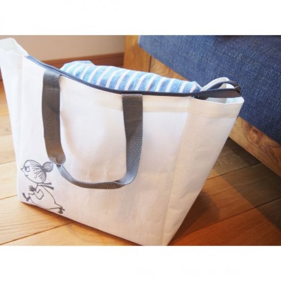 持ち手のプリントまでかわいいランドリースクエアバックは、リトルミイのホワイトとムーミンのグレーの2色展開です。両方とも落ち着いたカラーでランドリーバッグとしてもエコバッグとしてもお使いいただけます。