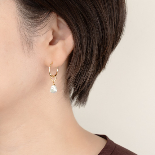 また、ポストタイプのピアスに通せるケイウノオリジナルの『カスタムチャーム』(別売)を組み合わせれば、華やかな耳元に変身。普段使いからパーティシーンまで活躍するアイテムです。