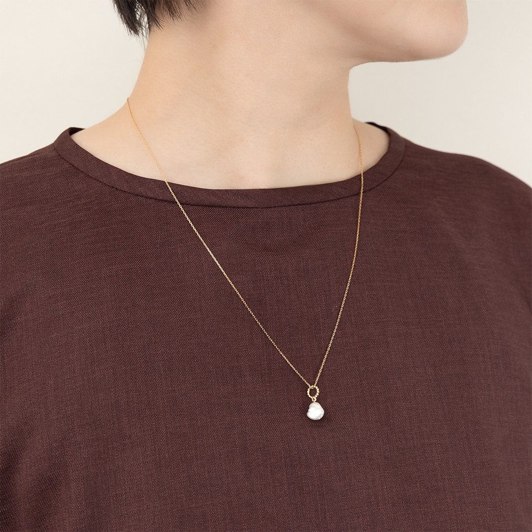 バロックパールが揺れるチャーム。チェーンに通してネックレスとして身に着けたり、フープピアスに通して耳元で楽しんだり、気分や装いに合わせてカスタマイズが可能です。様々な着け方を何通りも楽しめるチャームは、コストパフォーマンスにも優れた万能アイテム。珠が連なるようなデザイン性のあるバチカンで、360度どこからみても美しく身に着けられます。自然が生み出した個性的な形を、どの角度からも楽しめるチャームです。K18イエローゴールドを使用しており、永く愛用いただけます。