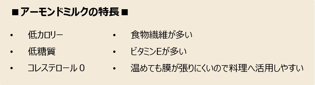 ※アーモンドミルクの原料となるアーモンドは、アレルギー表示の推奨品目(特定原材料に準ずるもの)に指定されています。