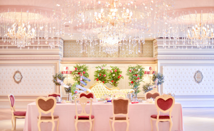 披露宴会場はそれぞれ異なった雰囲気に装飾されているので、さまざまな衣装に合わせて撮影できます。