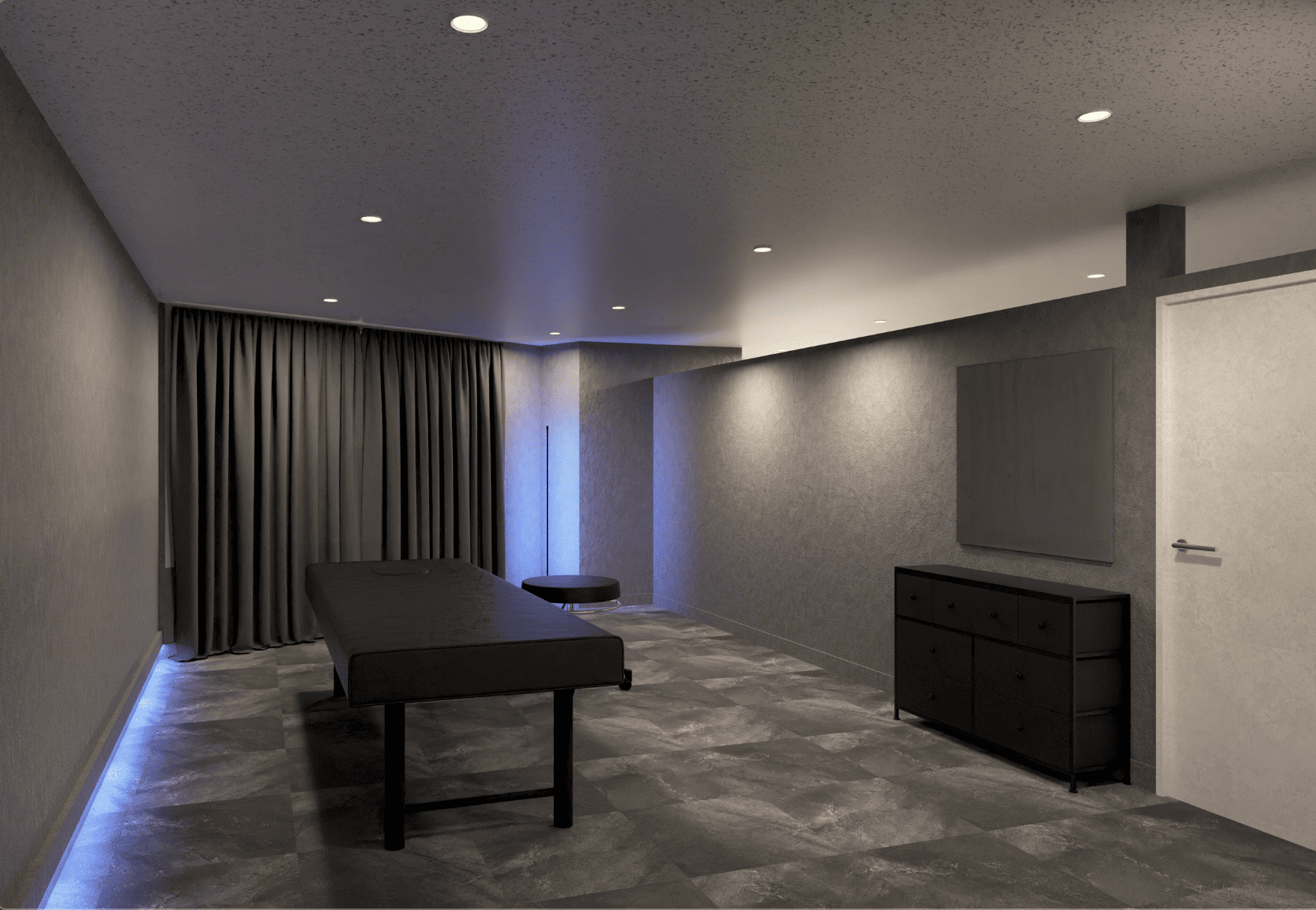 内装は落ち着いたモダンなデザインとラグジュアリーな雰囲気が融合する洗練された空間で、日常の喧騒を忘れ、自分自身をいたわる特別なひとときをお過ごしいただけます。
