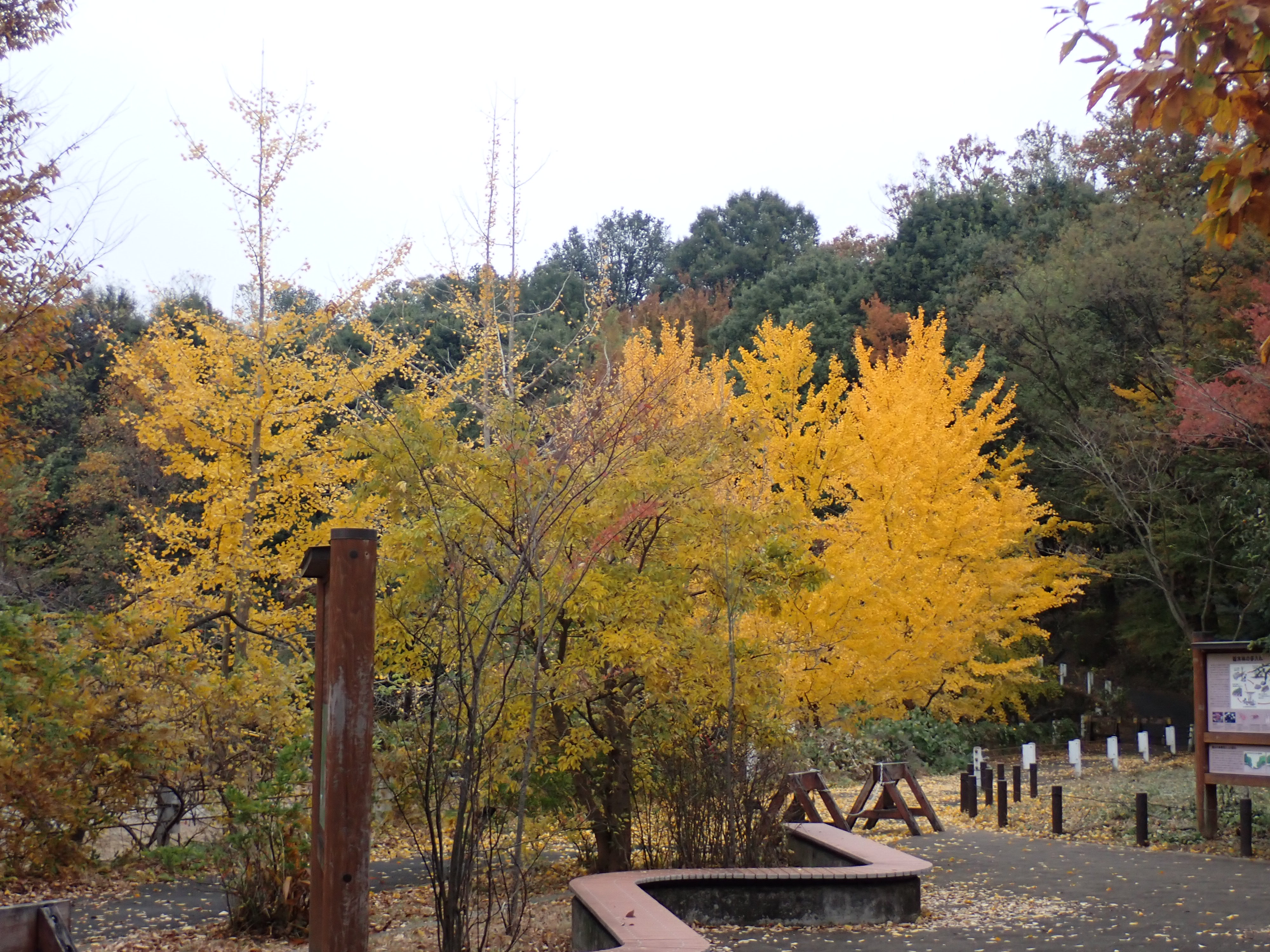 公園は野猿の尾根道の南東斜面に広がるので日当たりがよく、早春や晩秋の日だまりを求めての散策に好適です。樹林はクヌギやコナラの雑木林が中心ですが、サクラが散在し、春には色を添えます。