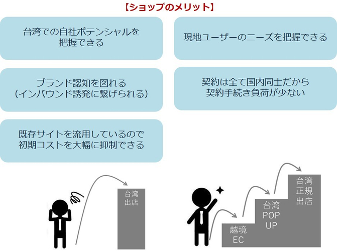 台湾を含む海外出店にはたくさんのハードルがありますが、アトレは台湾在住の日本ファンの方向けの「アトレ越境ECサイト」を用意することで、台湾市場の体感やテストマーケティングできる環境をショップへ提供し、ショップとともに、低リスク・低コストで、台湾進出の可能性を広げてまいります。