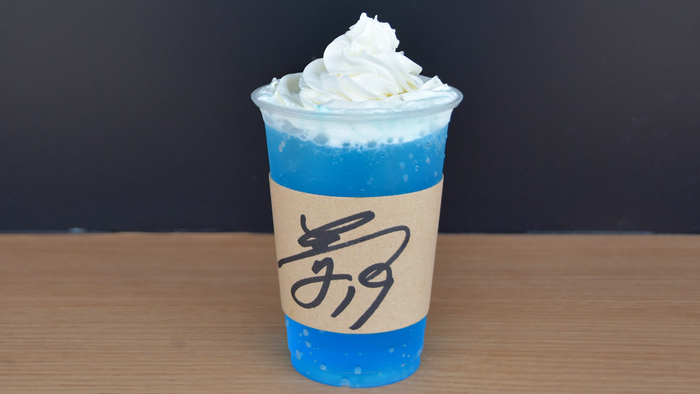 FCティアモ枚方のカラー「ティアモブルー」をイメージしたコラボドリンクを販売。見た目も味も爽やかな夏にぴったりなドリンクです。選手のサイン入りスリーブの特典付き。