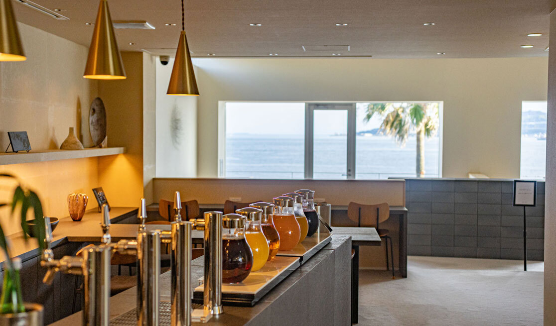 宿泊者専用のフリーラウンジでは、生ビールやナチュールワイン、ジュース、コーヒー、おつまみをご用意しております。壮大な海や明石海峡大橋、淡路島を眺めながら、贅沢なくつろぎのひとときをお楽しみください。
