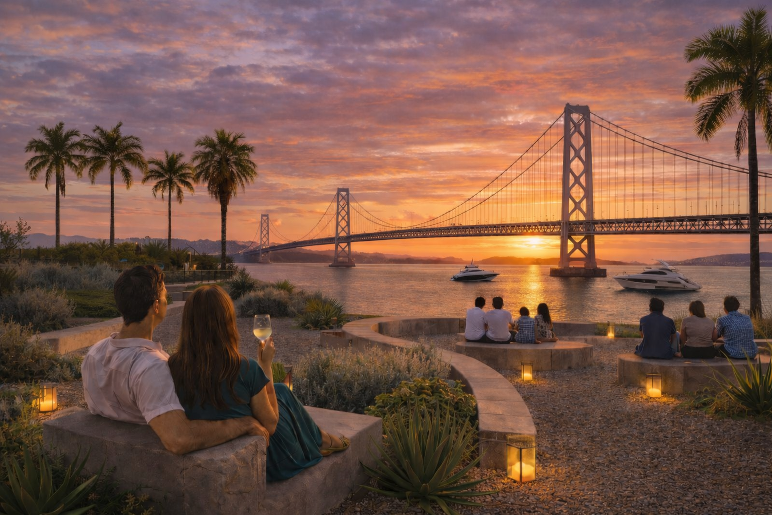 天候に恵まれた日には、180度のパノラマビューの中で、朝日と夕日の両方を望むことができ、夜にはライトアップされた明石海峡大橋が幻想的に浮かび上がります。時間帯ごとに表情を変える景色が、滞在そのものを豊かにします。