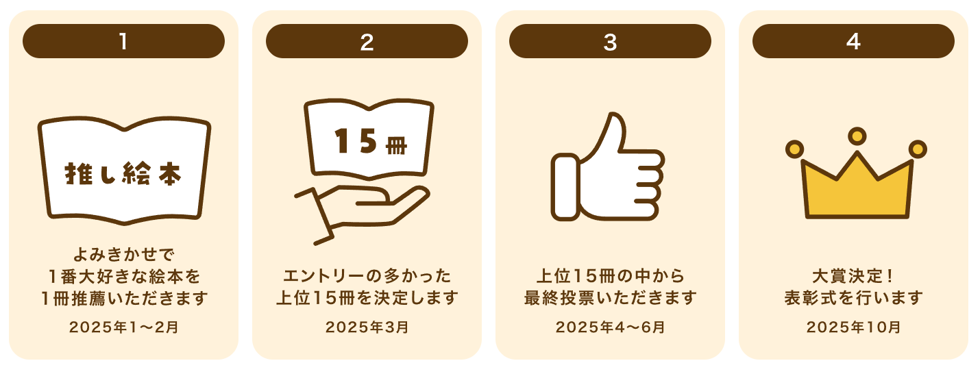 【「みんなのよみきかせ絵本大賞」概要】 ※今後変更になる可能性もあります。