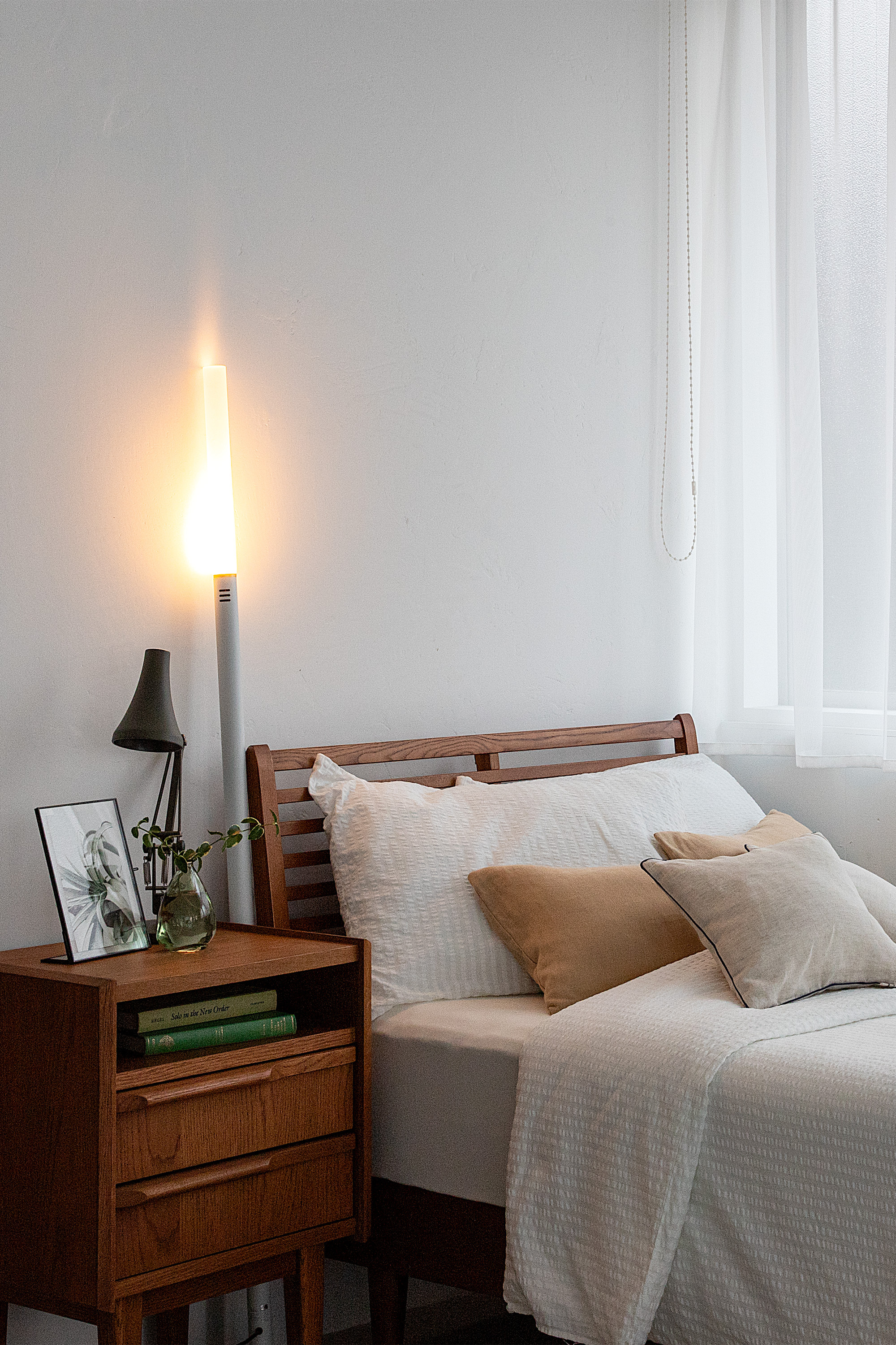 プロジェクト名:フロアライトを、ゼロから再構築。置く場所は、壁さえあればいい。立てかけるだけの新発想フロアライト「NYOI」