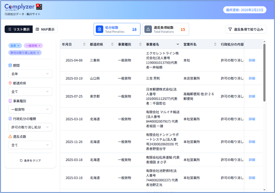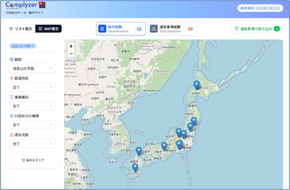 行政処分情報を横断的に集約・可視化。法令違反傾向や処分内容をデータから読み解く新サービスを公開。