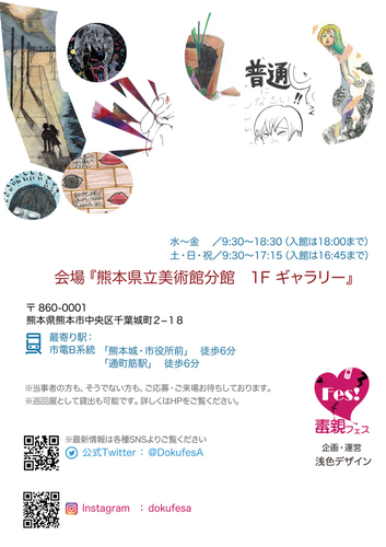 今年で第8回目となる「毒親アートフェス」は、虐待を生き抜いた人々が当事者の目線から絵や写真、文章など様々な形で表現した作品を展示する公募展を熊本県立美術館 分館にて開催します。