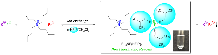 ●安全・安価なKFから新規フッ素化剤であるBu4NF(HFIP)3錯体を簡便かつ高効率で合成する手法を開発