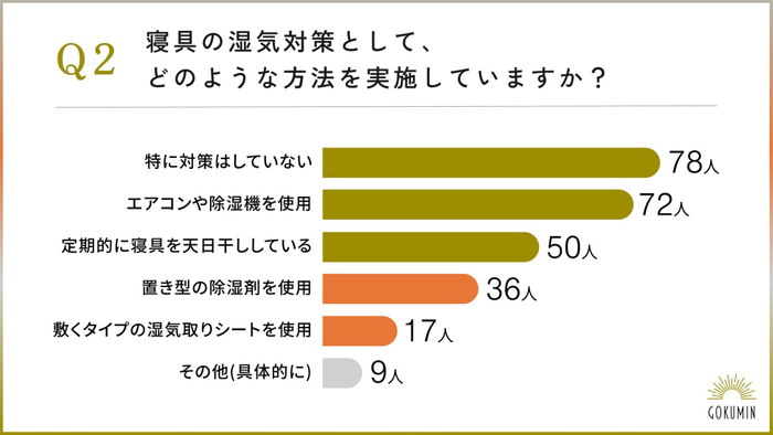Q2:現在、寝具の湿気対策としてどのような方法を実施していますか?(複数選択可)