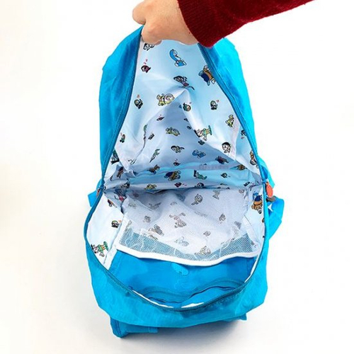このエコリュック、折りたたんでポケットに入れ込むことでコンパクトに収納できてしまうんです。リュックなのにコンパクトになるなんて、便利ですよね~。