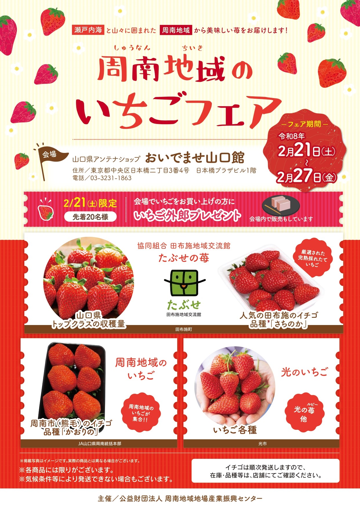 また、同日おいでませ山口館にて「周南地域のいちごフェア」、東京ミッドタウン八重洲1Fガレリアにて市内の企業、株式会社ACTA PLUS主催の廃棄物から生まれたアート「パブリック・アート展 神秘の森」が開催中🎉
