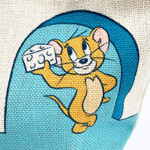 ジェリーとタフィーがチーズを前にご機嫌な表情な、ランチトートバッグです。