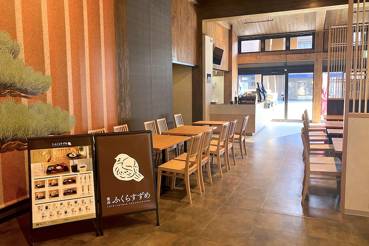 店名の「ふくらすずめ」は、冬に羽毛を膨らませた様子のすずめを指します。また、古来、家紋にも用いられ、「五穀豊穣」などをもたらす “縁起物”とされています。カフェでゆったりと寛いで、ふくらすずめのようにふっくらとお腹も心も満たしてほしい、というイメージで名付けました。シンボルマークは、まんまるに膨らんだすずめです。