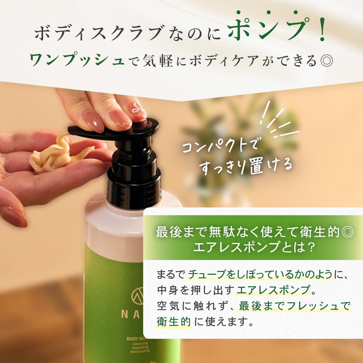 数々のランキングを受賞しているNALCから待望の【新アイテム誕生】スクラブなのにポンプ式!?”天然とうもろこしスクラブ※1”で全身ケアできる、新発想の『ボディスクラブパック』が発売