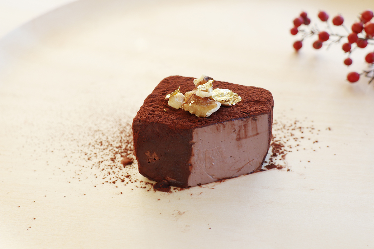 今年は、スイーツ感をさらに増すために、フランスの老舗チョコレートメーカーであるヴァローナ社のチョコレートをふんだんに使用し、カカオの濃厚な風味とチョコテリーヌのような口溶けを実現しました。