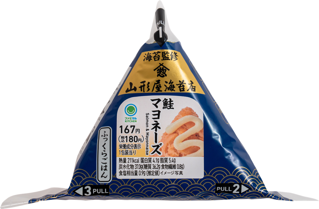 このたび「手巻おむすび」では、山形屋海苔店が創業以来260年で培ってきた知識や経験を元に監修された海苔を使用し、「手巻鮭マヨネーズ」と「手巻だし玉子明太」の2つの味わいのおむすびを発売いたします。艶があり、ひと口食べるとふわっと香る磯の香りと、パリッと食感がたまらない、厳選した海苔を使用した贅沢な一品です。ファミリーマート自信作のおいしいおむすびを、ぜひお召し上がりください。