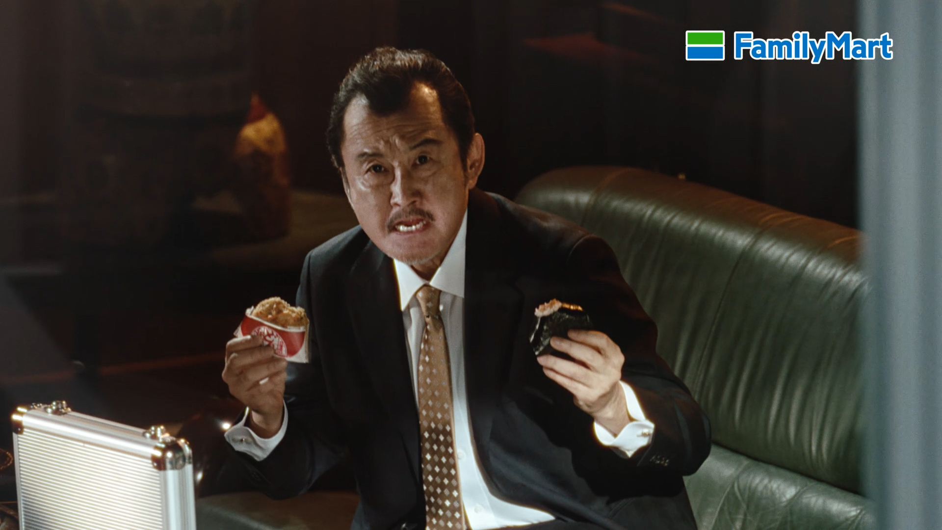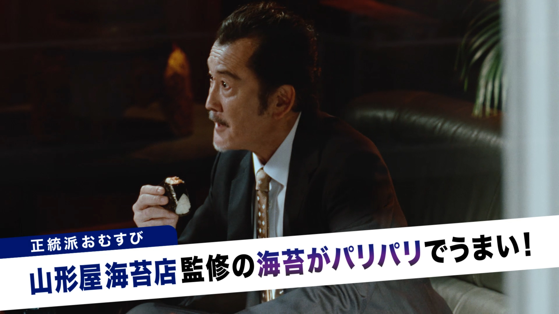 新TVCM「ファミマル おむすび 対決」篇では、吉田鋼太郎さんがアタッシュケースを前に、何やら怪しげな取引をしている最中、中から出てきたのは、山形屋海苔店が海苔を監修した「正統派」おむすび「手巻鮭マヨネーズ」。一口食べて思わず「海苔がパリパリでうまいなぁ」と目を輝かせる吉田さん。続いて「個性派」おむすび「どん兵衛天ぷらむすび」が渡され、かぶりつくと「ダシが染みてうまぁい」と満足な表情を浮かべます。最後はファインダー越しに「あなたはどっち!?」と選択を求めます。