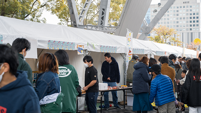 「One Dining Table FES.(ワンダイニングテーブルフェス)」は、「みんなでいただきます」を合言葉に、家族で楽しめるイベントを通じて、家族や友達と食卓を囲む楽しさや、子どもたちの活動支援、食育、子ども食堂活動支援を目的に、NPO法人One Dining Tableと有志によって立ち上げた取り組みです。2023年3月の春分の日にオアシス21で初開催となり、これまでに多くの方々にご来場いただきました。