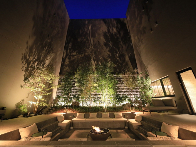 館内施設:大浴場、レストラン、湯上りテラス、ファイヤープレイス