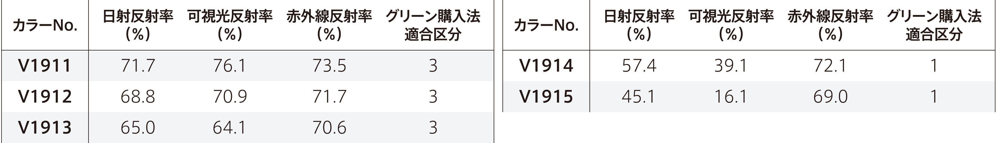 光学特性およびグリーン購入法適合区分