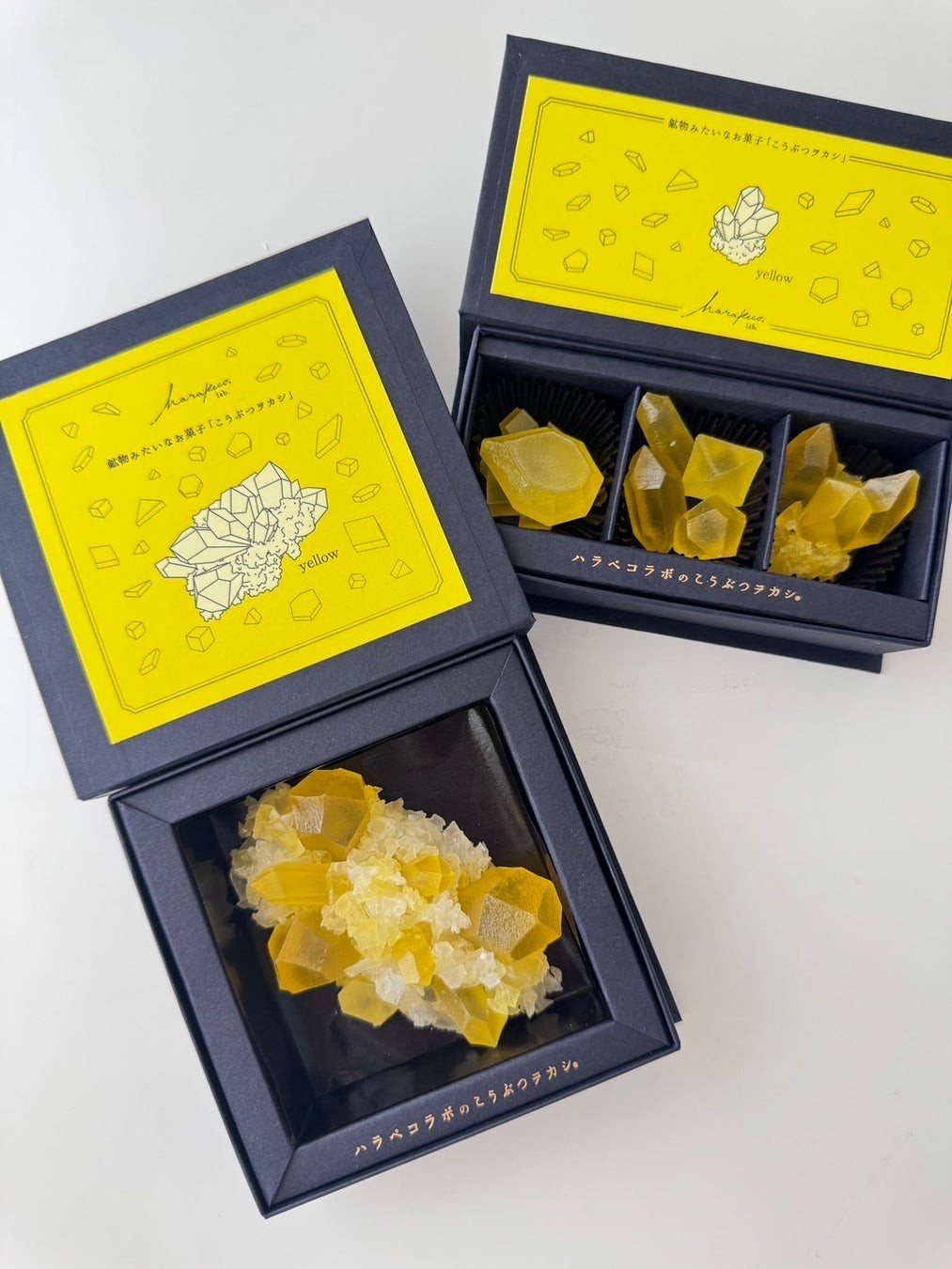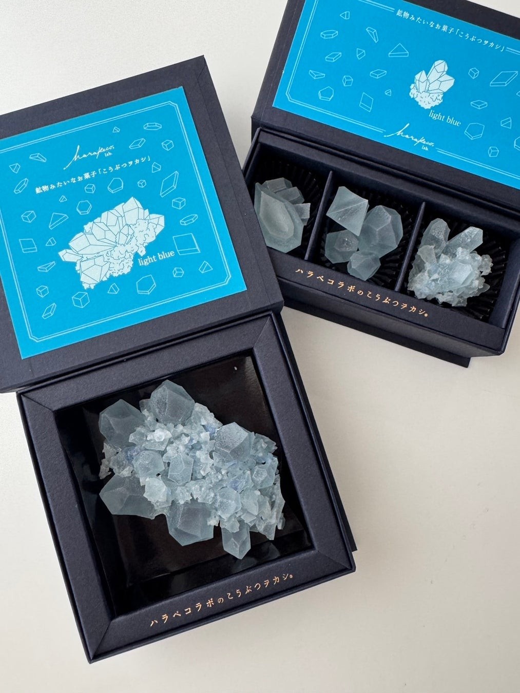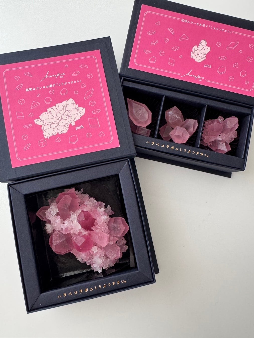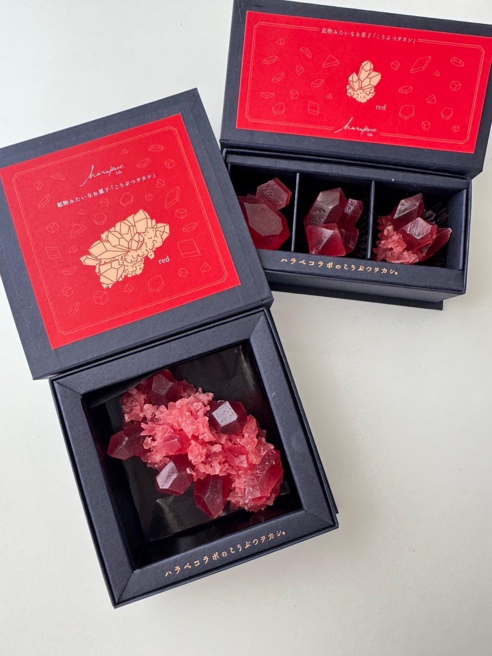 ハラペコラボは、福岡を拠点に活動する女性中心のクリエイティブブランド。「アートと食の融合」をテーマに、鉱物のように美しい琥珀糖『こうぶつヲカシ』や、色彩と素材にこだわったスイーツ・ケータリングを展開。開発・制作・パッケージデザインまですべてを手作業で行い、“どれひとつとして同じものはない”唯一無二"の美しさと想いを届けています。有名ゲーム、有名アニメとのコラボ作品、百貨店催事、雑誌・TVなど多数メディアでも話題に。贈り物として、また自身のライフスタイルを彩るアイテムとして、全国のファンから支持を得ています。