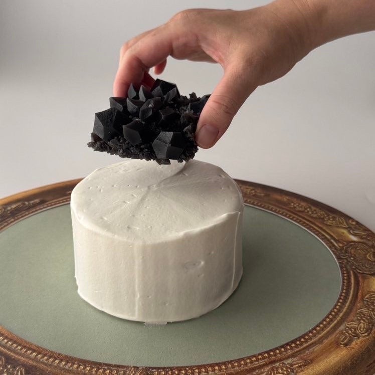 「推し色のこうぶつヲカシ」は、リキュールや果汁、黒ごまペーストなどで風味をつけ、見た目だけでなく味も楽しめるアートスイーツ。天然由来の着色料を使用し、神秘的な鉱物の美しさと味わいを表現しました。